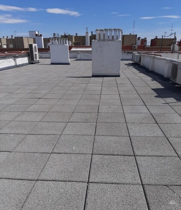 - Ejecución de SATE con placas de Poliestireno de 12 cms con terminación de mortero en fachada y placas de losa filtrante con aislamiento térmico incorporado.