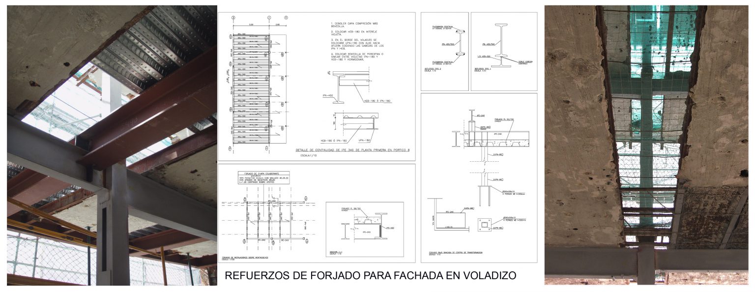 • Se realiza un refuerzo estructural integral con ejecución de  nuevos forjados de chapa colaborante con apoyos estructurales de vigas y pilares metálicos.