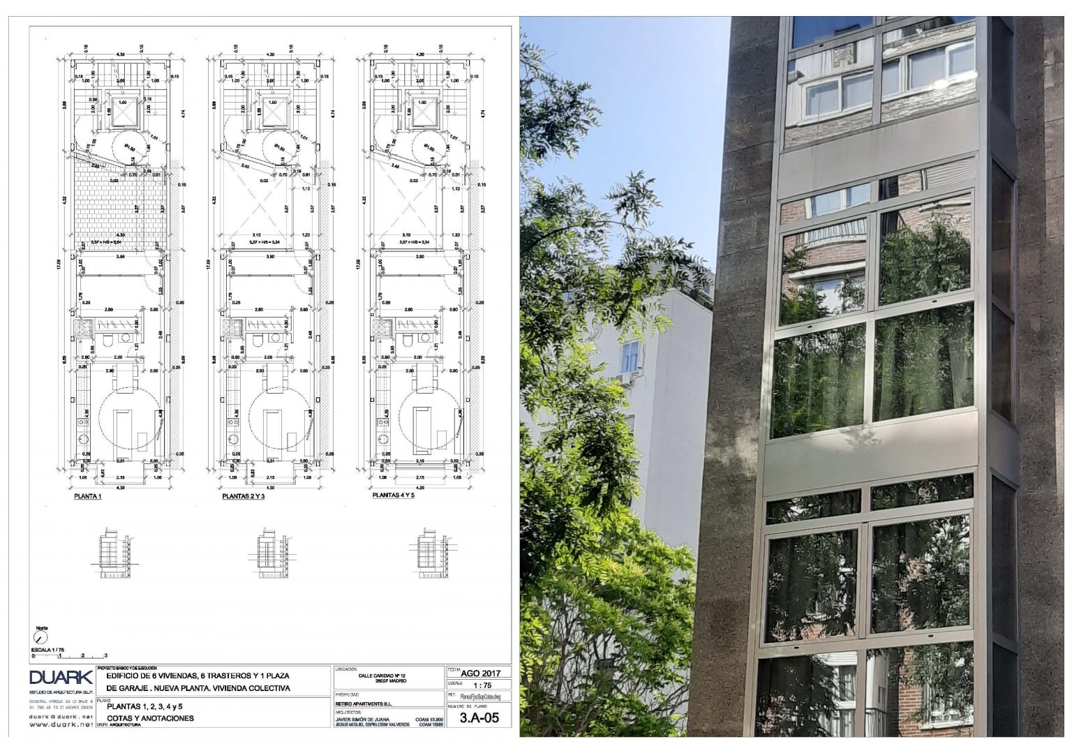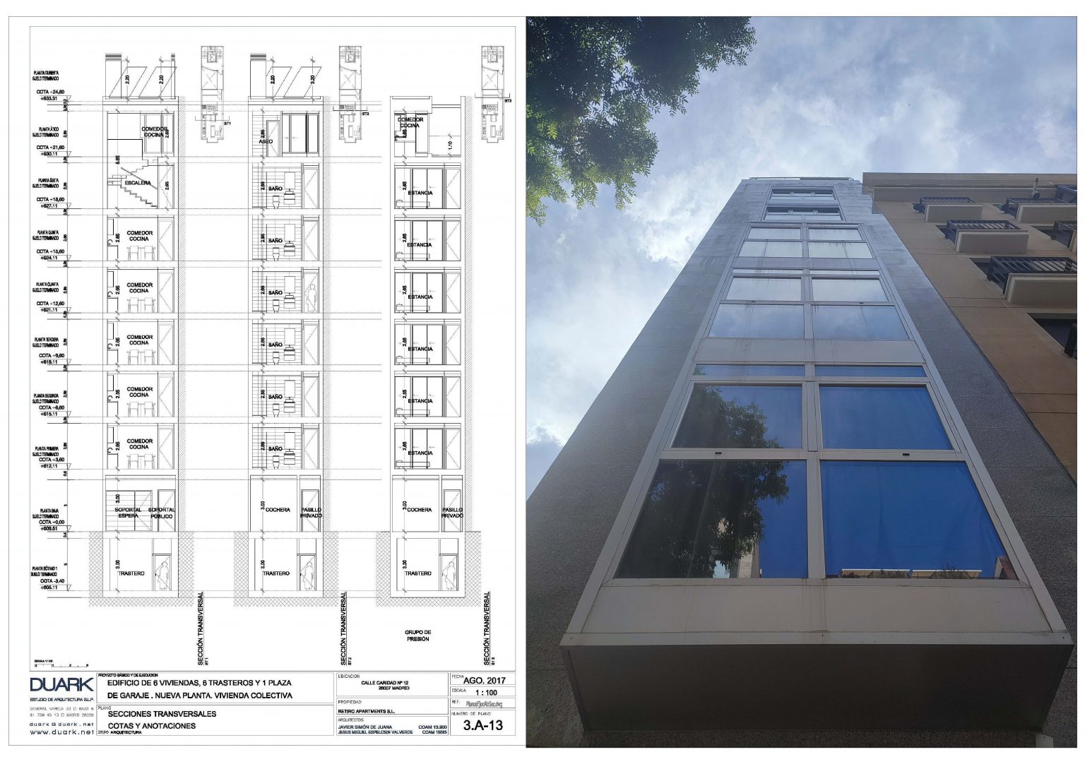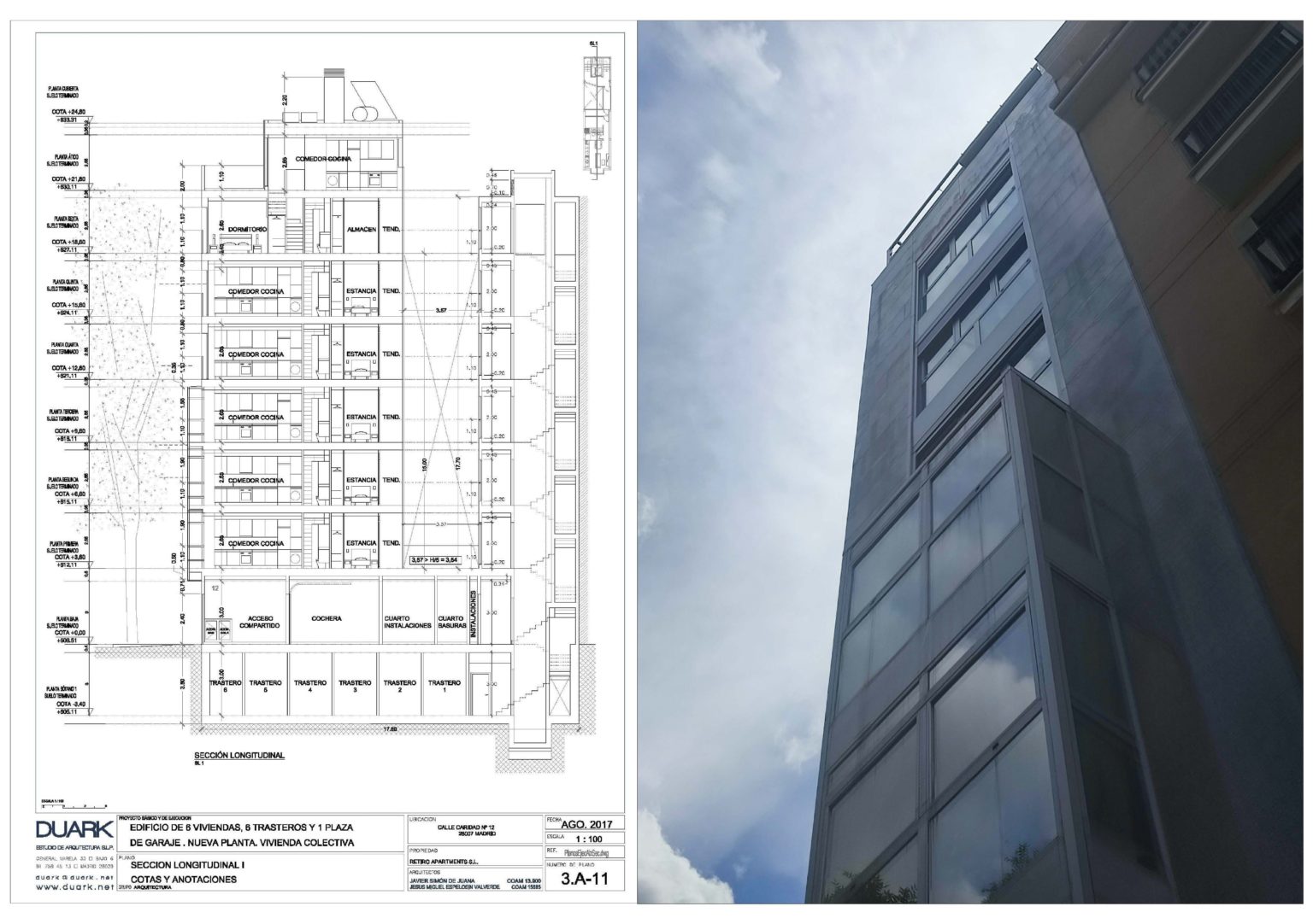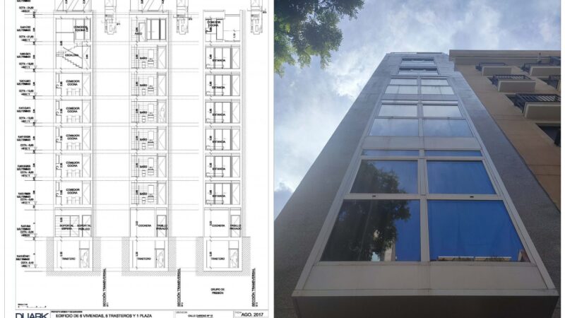 Ejecución de 6 viviendasen edificio multifamiliar Calle Caridad nº 12. Madrid PROYECTOEjecución de 6 viviendas en edificio multifamiliar.Calle Caridad nº 12. Madrid SUPERFICIE563,20 m2 construidos + trasteros en p. sótanoACTUACIÓNActuación de edificio multifamiliar en 5 metros de fachadaEjecución de sótano para ubicación de trasterosP. baja + 6 plantas +áticoDesarrollo de programa de vivienda de 60 m2Patio trasero de acceso a viviendas Imágenes del proyecto