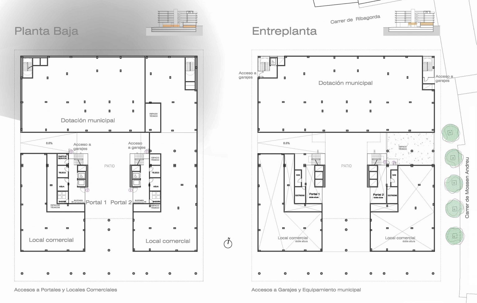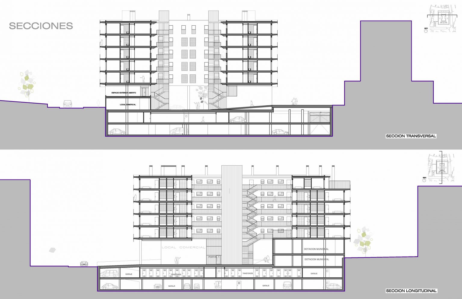• La planta baja queda articulada con usos comerciales, equipamiento público, espacio urbano a modo de plaza.