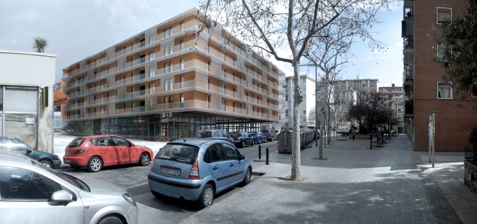 • Cerramiento de fachada mediante celosía metálica.