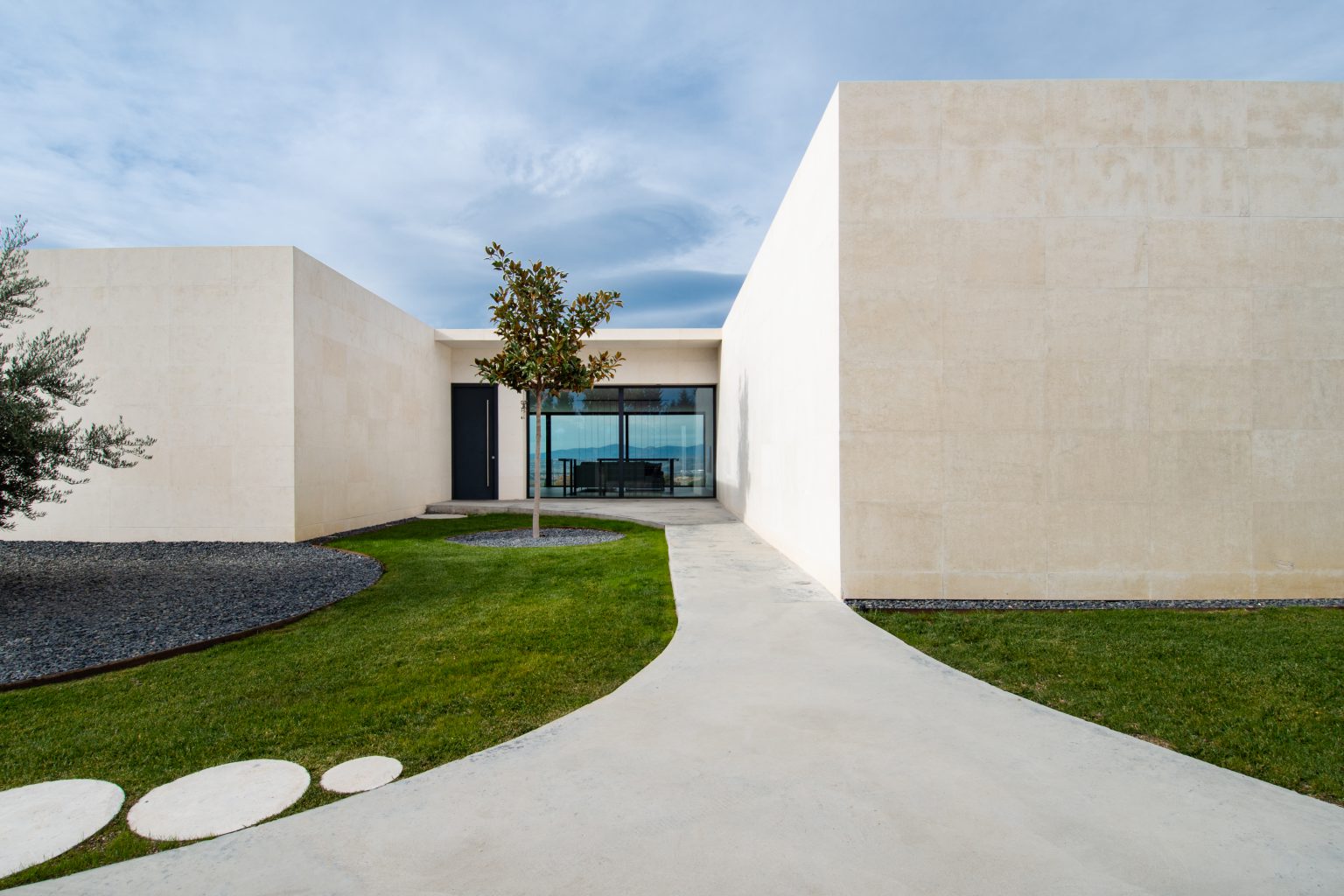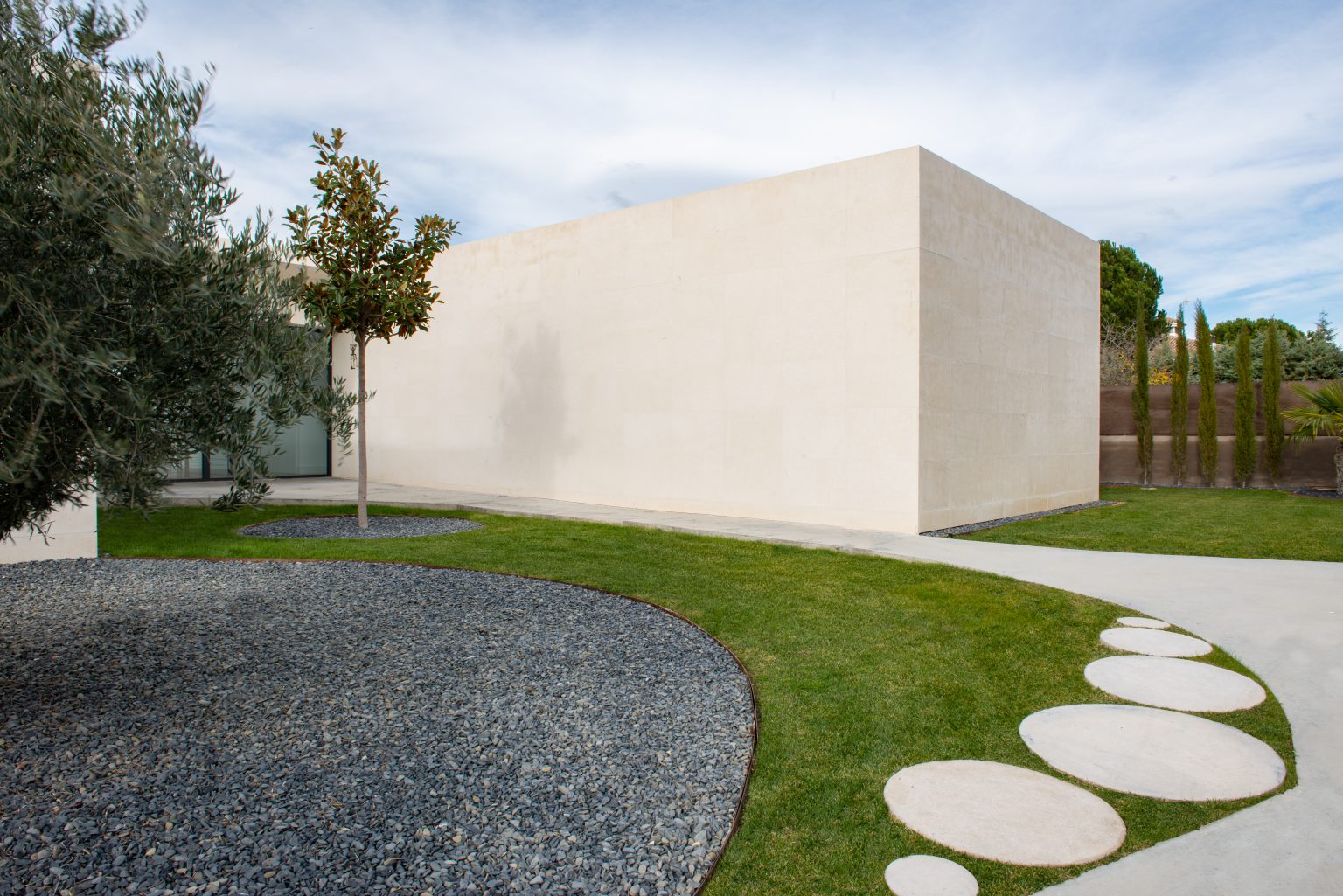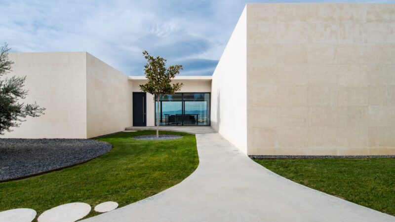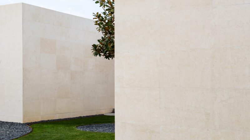 Pieza blanca caliza conteniendo programa de la vivienda