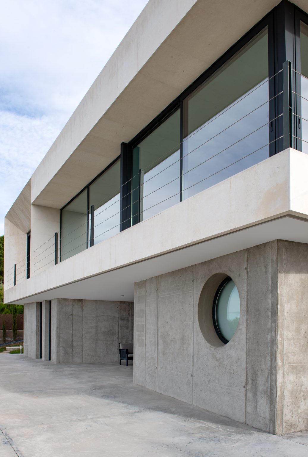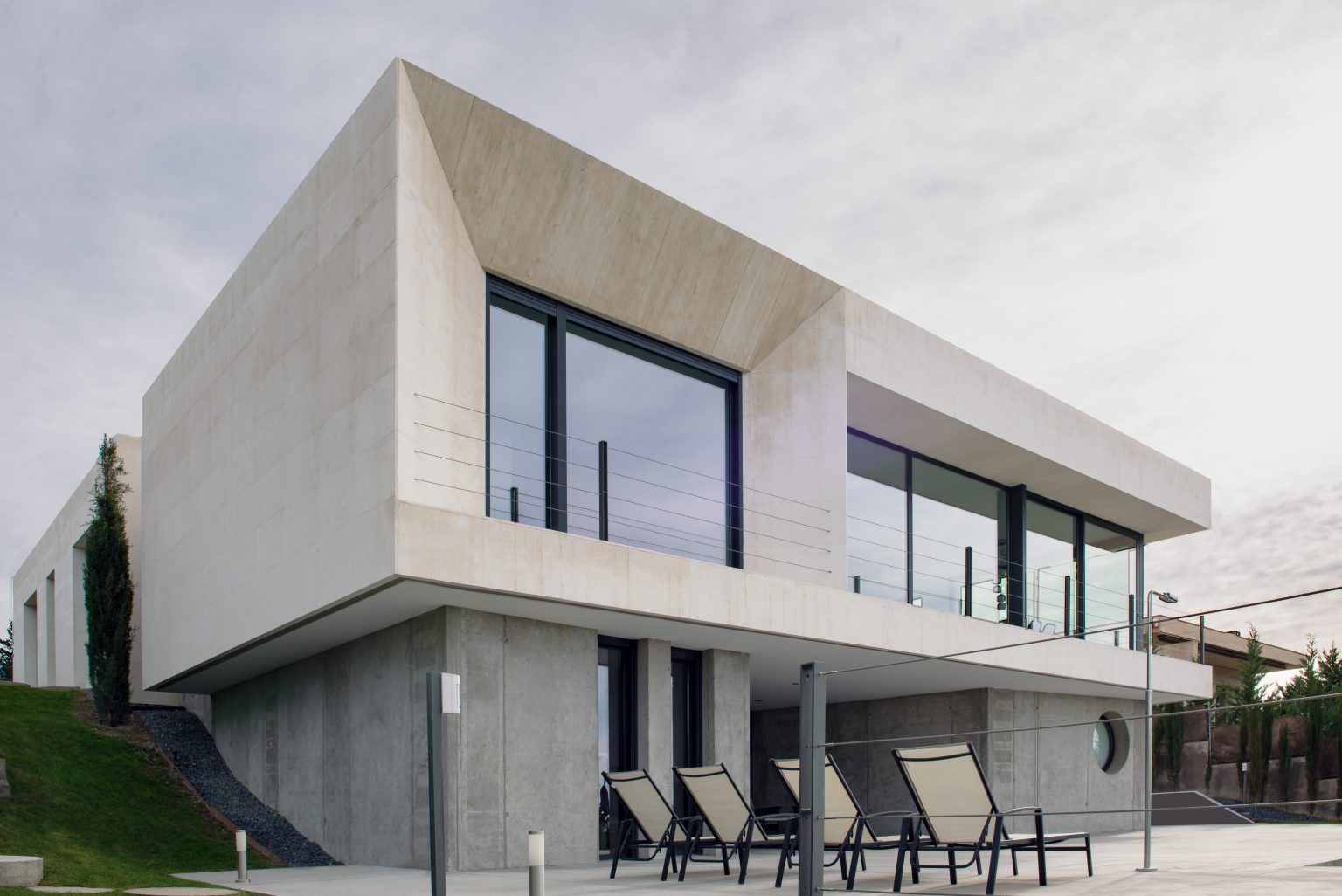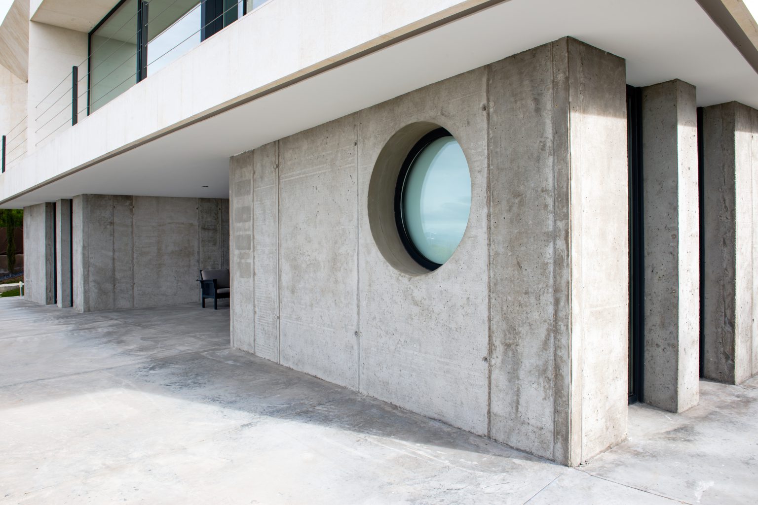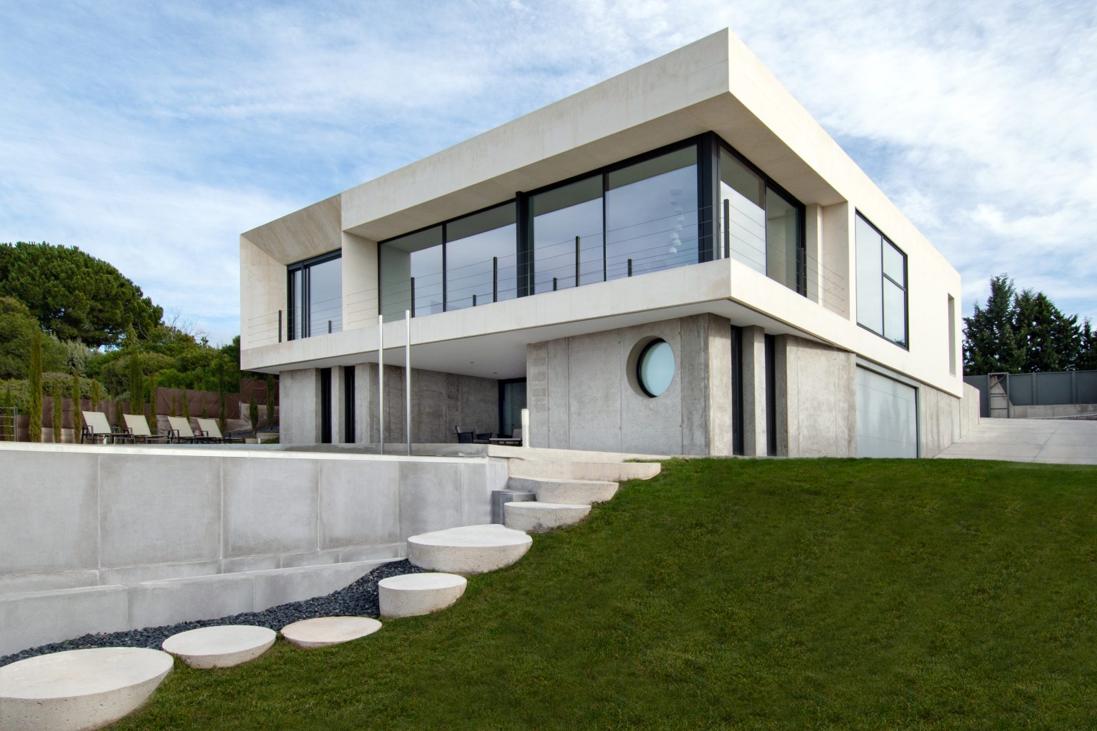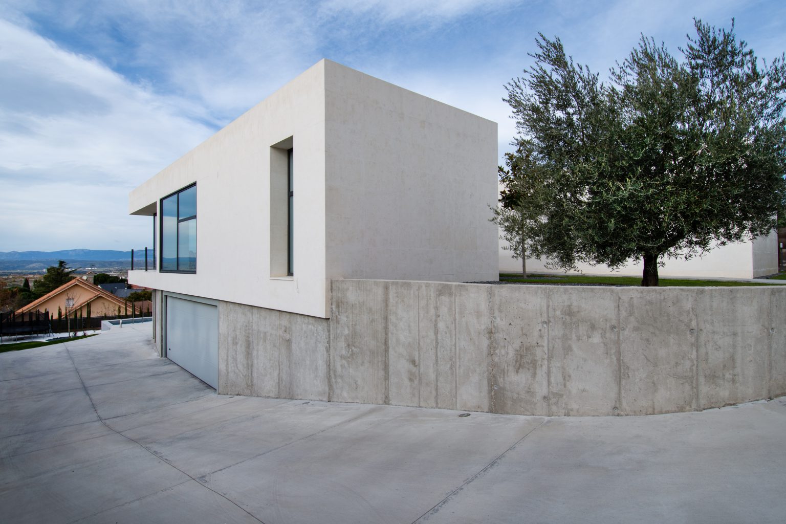 Zócalo de hormigón conteniendo espacios de garaje y bodega