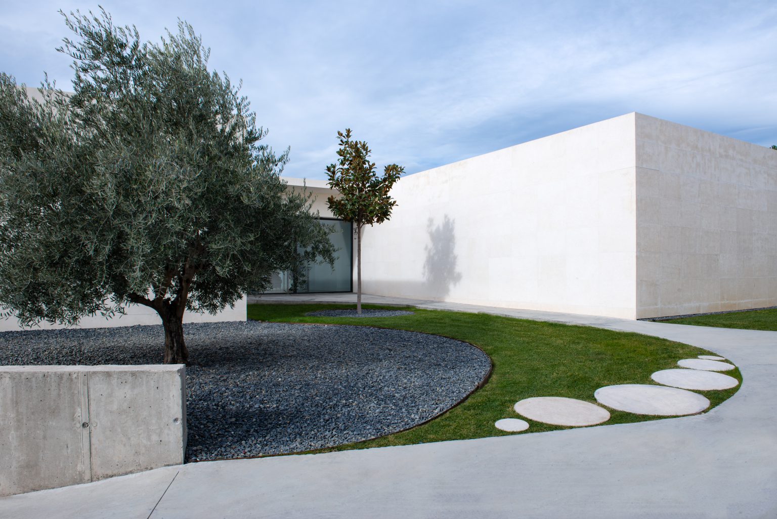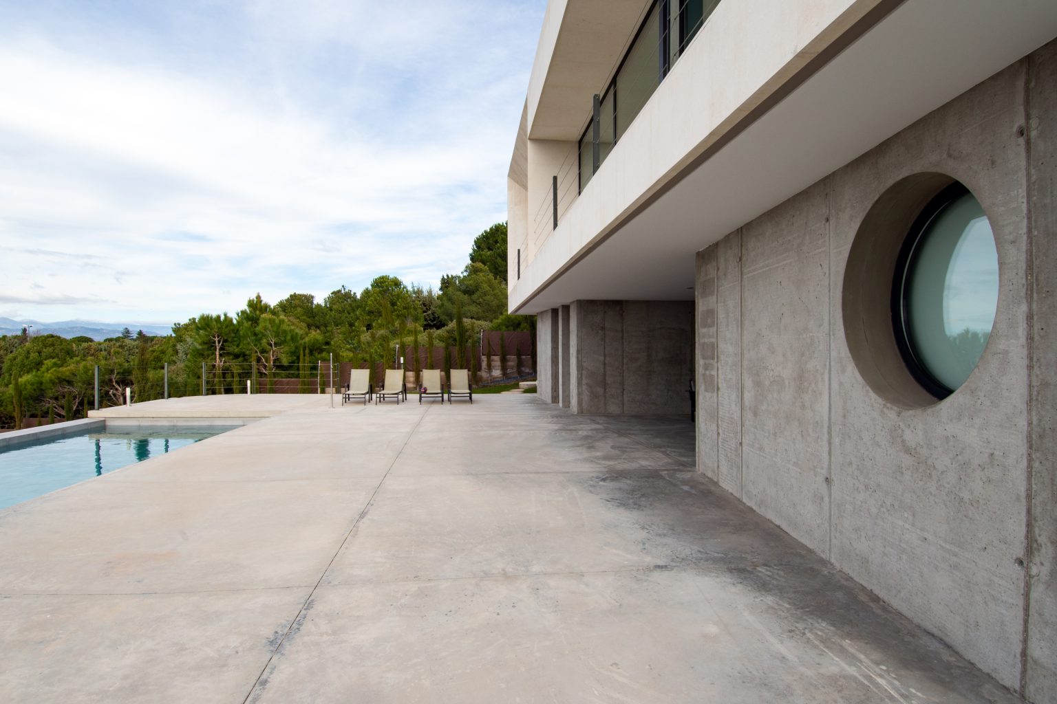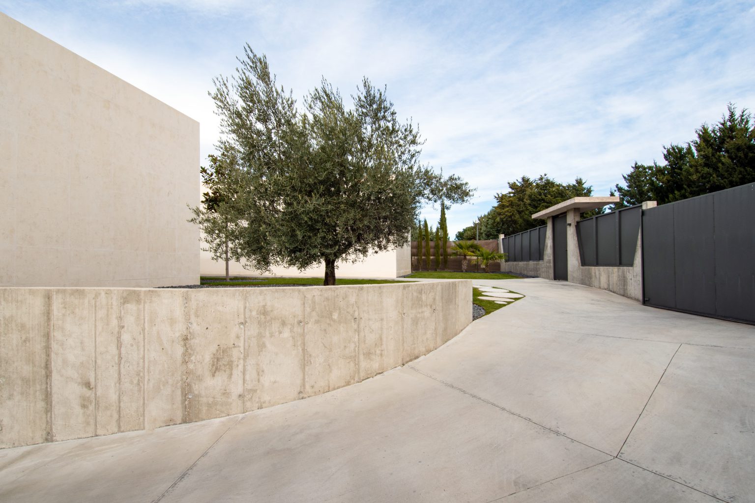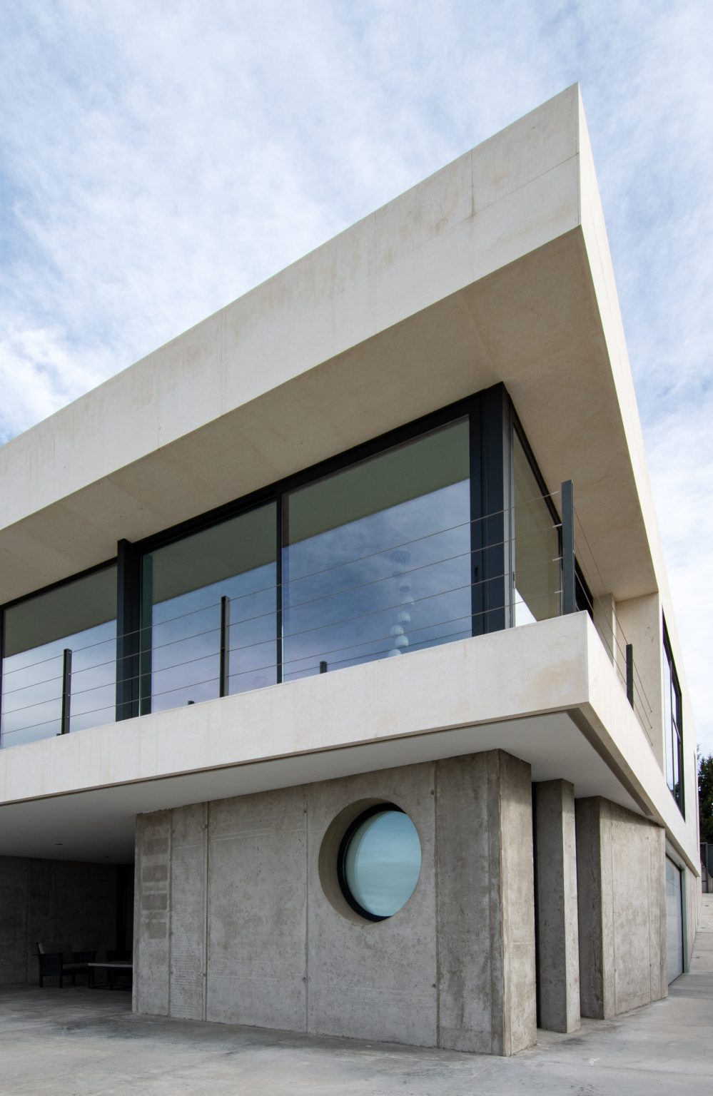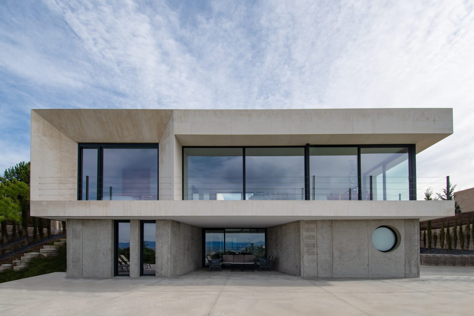 Zócalo de hormigón conteniendo espacios de garaje y bodega