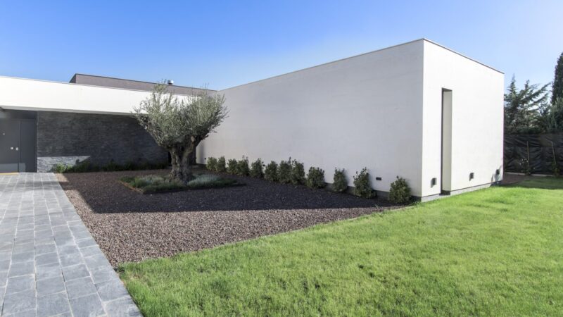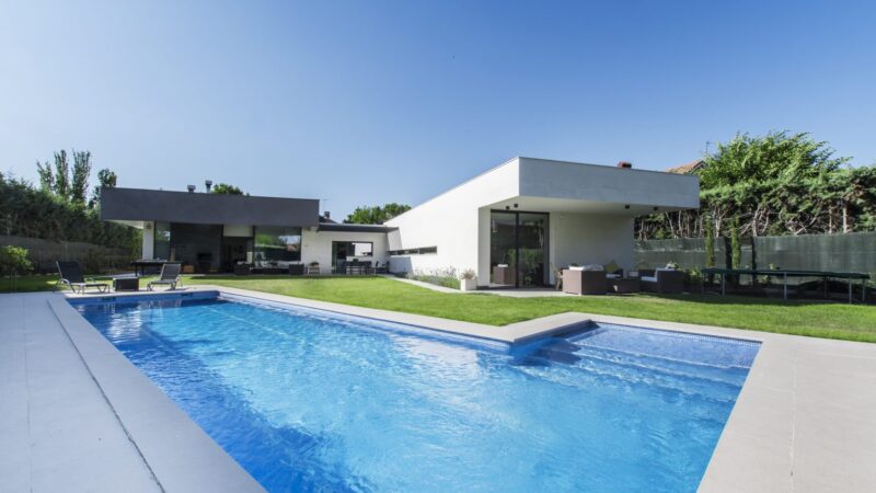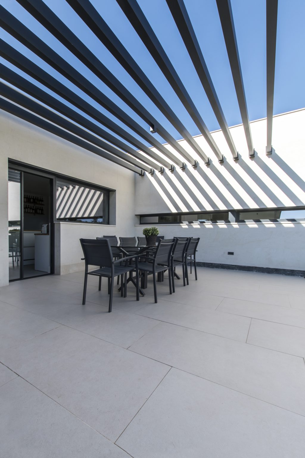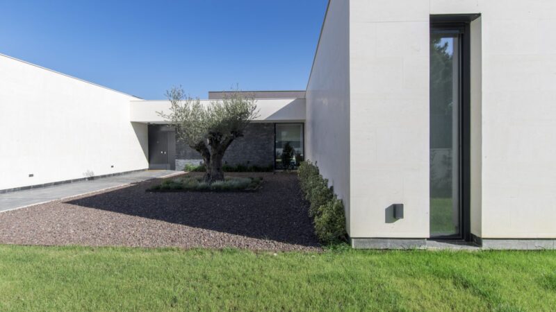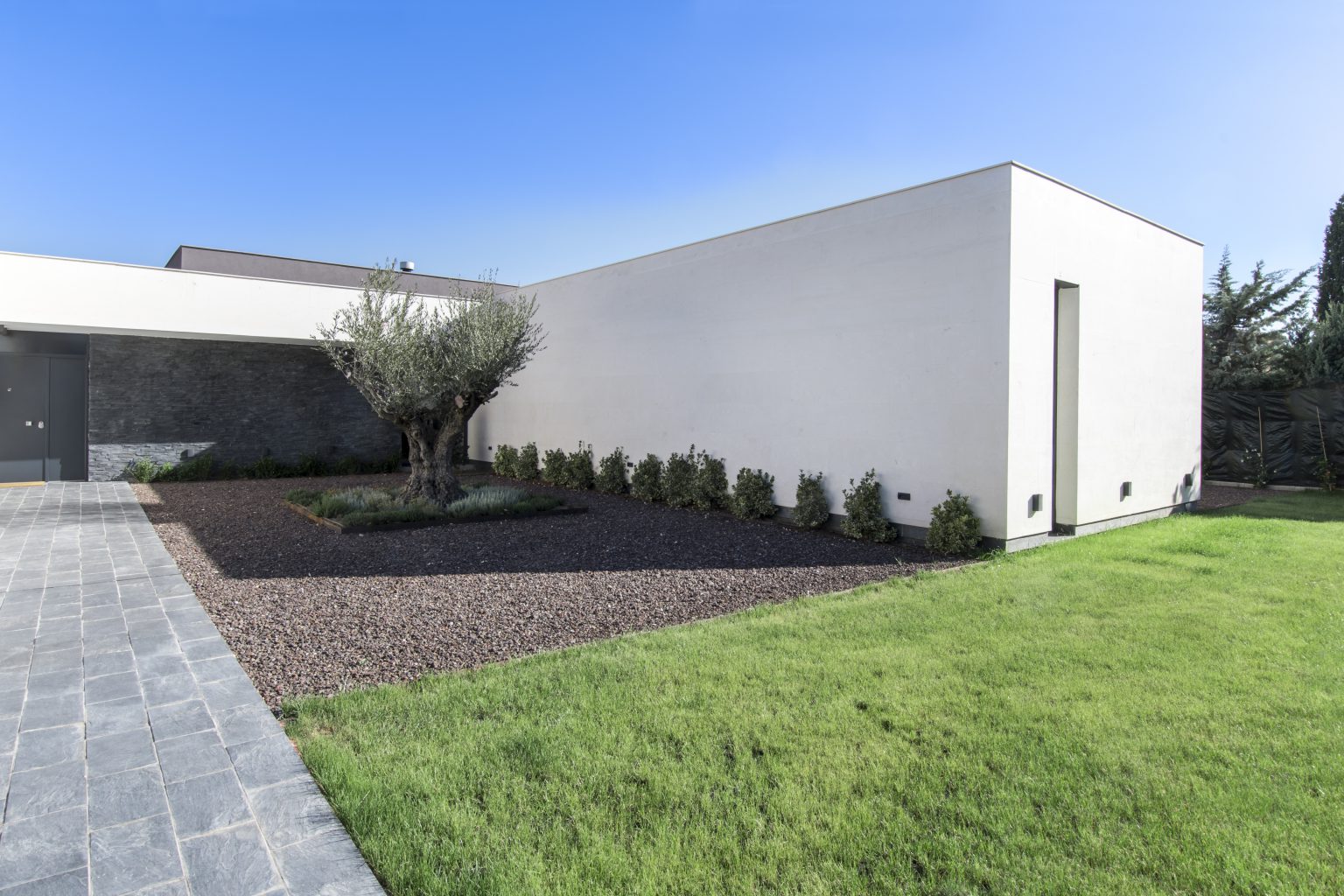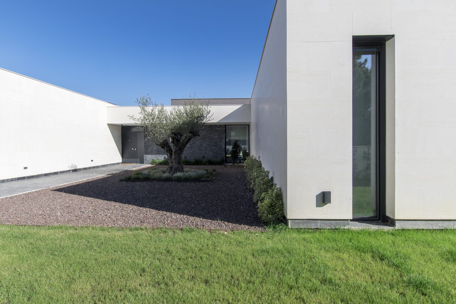 Relación directa de espacio de salón comedor cocina con espacios de jardín exterior